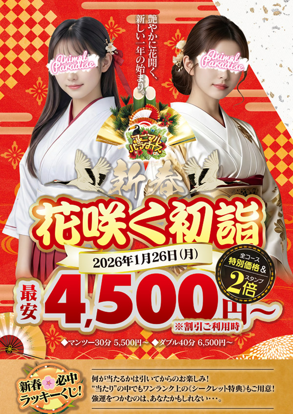 1/26(月)限定!新春 花咲く初詣★艶やかに花開く、新しい一年の始まり♡全コース特別価格&スタンプ2倍、最安4,500円〜!新春“必中ラッキーくじ”で《シークレット特典》のチャンス!